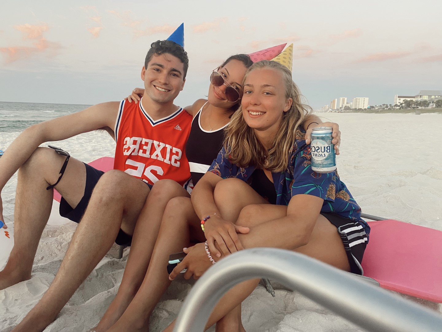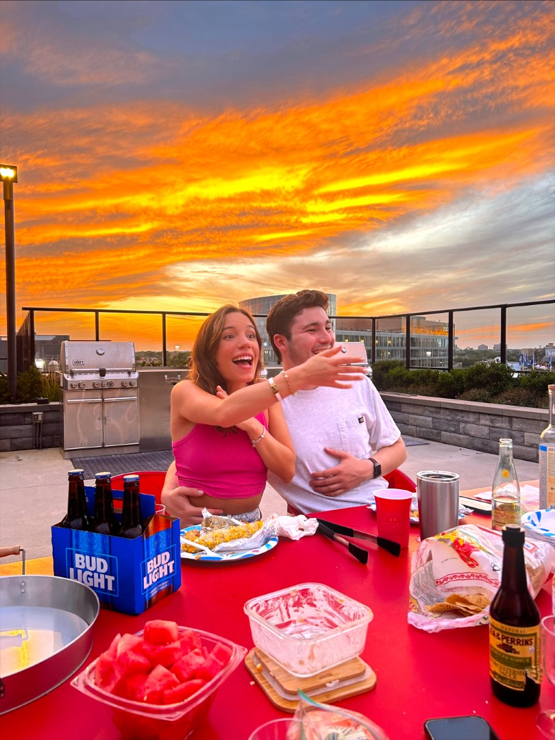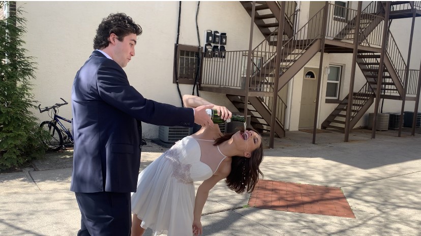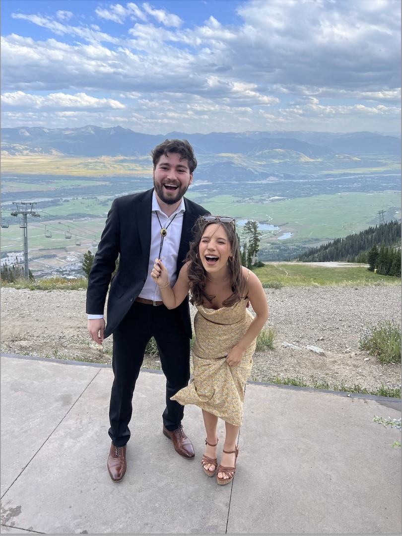 After years of friendship, everything changed in January 2021. We somehow got cast as the “bride and groom” in a fake wedding for a themed party, which in hindsight feels like very aggressive foreshadowing. Honestly, a real wedding at an all-inclusive in Mexico might not look all that different from a college darty…just slightly better outfits and significantly upgraded drinks (no borgs allowed!).